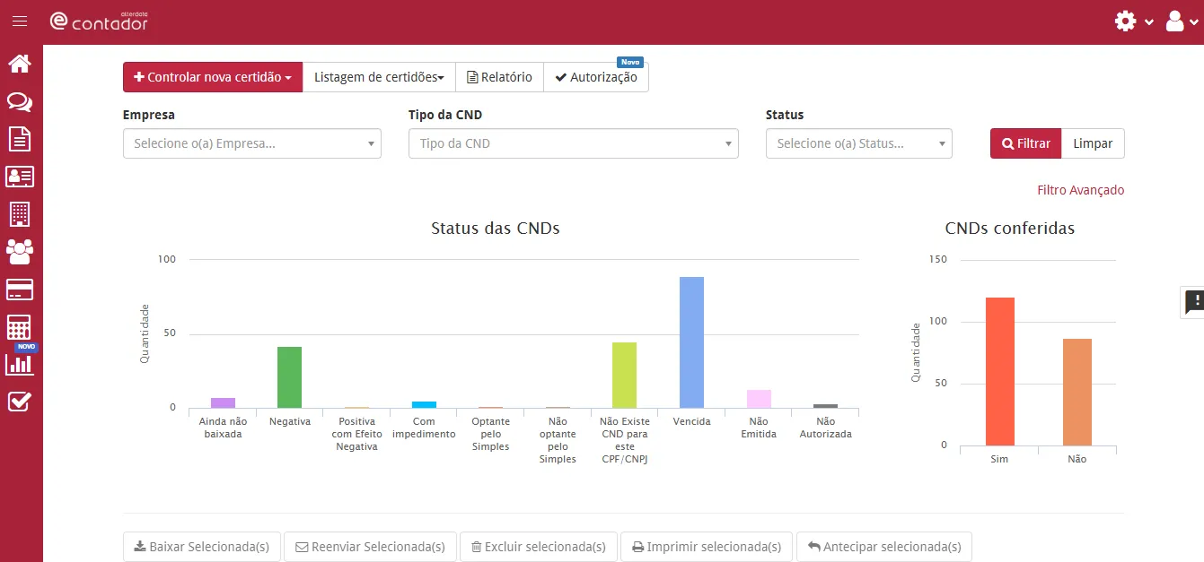 Tenha uma visão completa e centralizada do status de todas as certidões em um único dashboard.